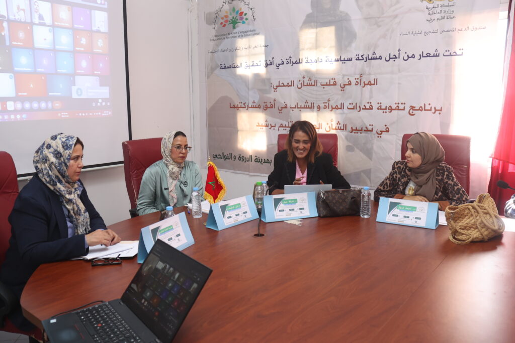 “المرأة في قلب الشأن المحلي : برنامج تقوية قدرات المرأة والشباب في أفق مشاركتهما في تدبير الشأن العام بإقليم برشيد”، وهو برنامج يروم تعزيز المشاركة السياسية الدامجة للمرأة، وترسيخ قيم المناصفة كأفق استراتيجي للمغرب.