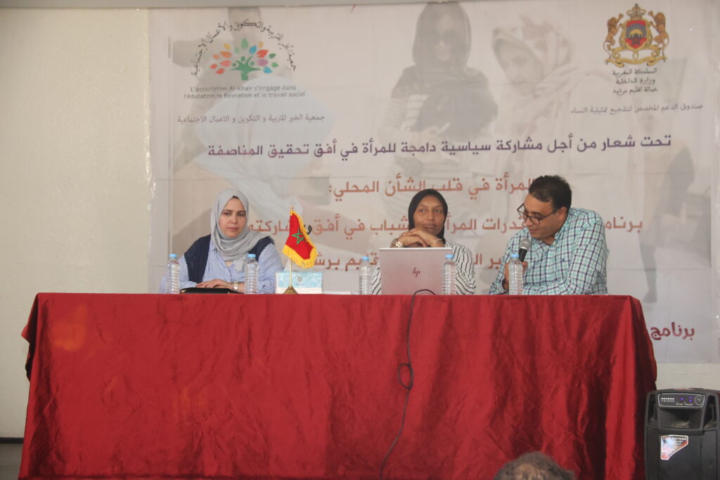 في إطار برنامج اللقاءات التواصلية التي تسهر على تنظيمها جمعية الخير للتربية والتكوين والاعمال الاجتماعية بدعم من صندوق الدعم لتشجيع تمثيلية النساء بعمالة إقليم برشيد، احتضنت دار الشباب بمدينة الدروة مساء السبت 04 أكتوبر 2025، اللقاء الثالث من السلسلة، تحت شعار: “المشاركة السياسية للمرأة في أفق المناصفة والحكامة الترابية“.