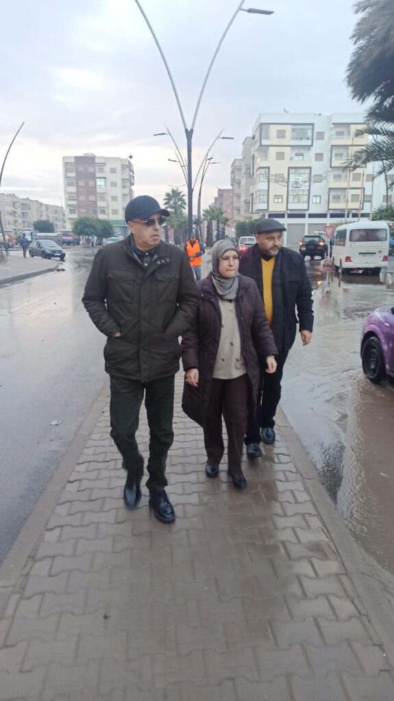الجولة التي قادها عامل الإقليم تمت بمرافقة السلطة المحلية ورئيسة المجلس الجماعي، حيث وقف على وضعية الأزقة والشوارع التي تأثرت بالتساقطات، موجهاً تعليمات عاجلة لتعبئة فرق التدخل وتقنيات التطهير من أجل امتصاص المياه وتيسير الحركة.